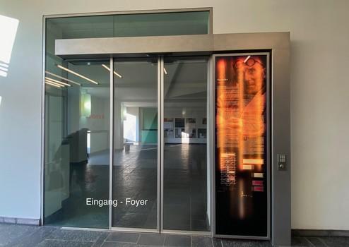 Im großzügigen Foyer ist Geschichte und architektonische Konzeption des Hauses dokumentiert.