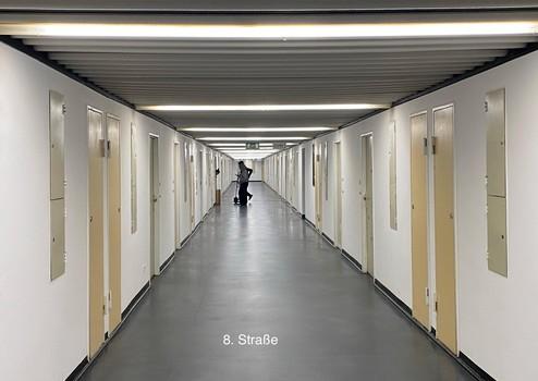 Zentrales Element sind die von hier über 3 Aufzüge erreichbaren innen liegenden Straßen. Sie ersetzen klassische Etagen und bilden einen funktionalen, urbanen Raum innerhalb des Gebäudes.Gleichzeitig markieren sie bewusst den Übergang vom gemeinschaftlichen Bereich zur privaten Wohnsphäre.