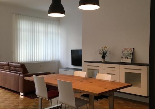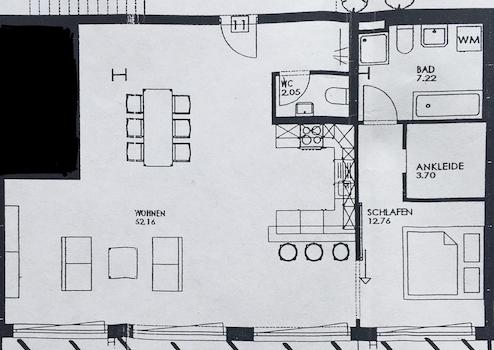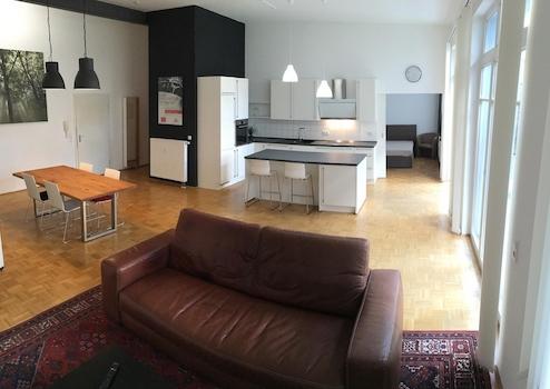 Das Loft wird voll möbliert übergeben. Von Waschmaschine und Trockner bis hin zum Sofa, Ankleideschränke und Essbereich ist an alles gedacht - lediglich das eigene Bett ist aus hygienischen Gründen durch den Mieter zu besorgen.