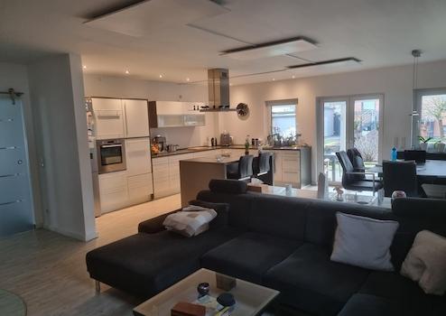 Dieses hochwertige Einfamilienhaus mit separater Einliegerwohnung (ELW) mit ca. 232 m² Wohnfläche und 623 m² Grundstücksfläche wurde 2014 erbaut. Die Architektur mit 1,5 Geschossen und großzügigen Raumhöhen schafft ein offenes Wohngefühl. Große Fensterflächen, hochwertige Materialien und moderne Haustechnik wie eine kontrollierte Be- und Entlüftungsanlage mit Wärmerückgewinnung sorgen für höchsten Komfort.