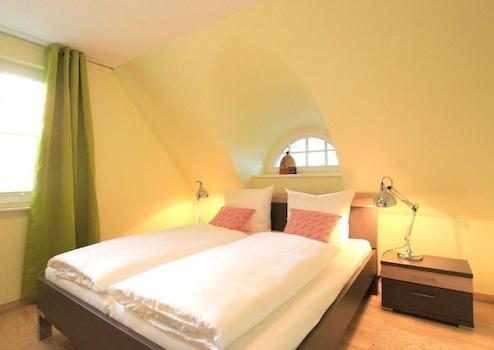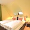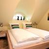 Im Obergeschoss befinden sich drei liebevoll eingerichtete Schlafzimmer (zwei mit Doppelbetten, eines mit zwei Einzelbetten) sowie ein weiteres hochwertiges Tageslichtbad mit Badewanne und bodengleicher Dusche. Über eine separate Buchentreppe gelangen Sie in den ausgebauten Spitzboden, der mit einem zusätzlichen Bett und einer kleinen Lounge weiteren Rückzugsraum bietet.