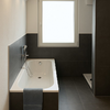 Moderne Bad mit Dusche, Badewanne und maßgefertigtem Waschtisch