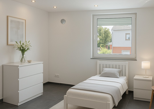 Die Immobilie wurde Ende 2025 fertig gestellt und war bis jetzt für 3 Monate bewohnt, die Aussenanlage werden jetzt im Frühjahr fertig gestellt. Teilweise wurde unter zur Hilfenahme von KI die Möblierung vorgenommen. Bitte haben Sie Verständnis, dass nur Anfragen mit einem aussagekräftigen Anschreiben bearbeitet werden können. Sie sollten außerdem in der Lage sein die Miete aus Eigenmitteln zu begleichen. Für diese Wohnung gilt die Mietpreisbremse nicht, da es sich um einen Neubau handelt, der erstmals nach dem 1. Oktober 2014 genutzt und vermietet wurde (§ 556f Satz 1 BGB). Bitte beachten Sie, dass die alle Angaben im Expose unverbindlich sind. Sie daher herzlich eingeladen bei einer Besichtigung alles im Detail anzuschauen und auszumessen.