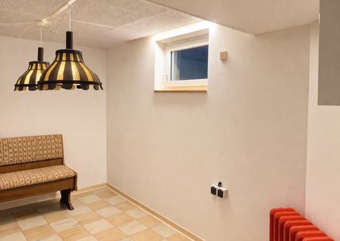 Die Decken im Flur, Wohnzimmer, Küche usw. sind teilweise getäfelt und in sehr gutem Zustand. Der Flur und Küche sind mit Fließen ausgelegt. Die Treppen EG. KG. 1.OG und Flure im 1. OG. ist Teppichboden verlegt. Der Dachboden ist isoliert, jedoch nicht das Dach. Die Terrasse ist gefliest, überdacht und könnte auch zum Wintergarten umgebaut werden. Im 1.OG. Schlafzimmer gibt es einen Balkon, der auch zur Sicherheit mit einem Gitter verschlossen werden kann.