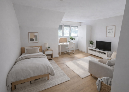 Die in der Anzeige verwendeten Bilder sind teilweise AI-generiert und basieren auf realen Vorlagen bzw. Bildern der Zimmer. Sie dienen der Veranschaulichung nach Abschluss der Sanierung. Die tatsächliche Endausstattung wird den dargestellten Bildern sehr ähnlich sein, kann im Detail jedoch leicht abweichen.
