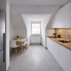 Neben den beiden Zimmern steht den Bewohner:innen eine große Küche mit Essbereich als gemeinschaftlicher Aufenthaltsbereich zur Verfügung. Damit bietet die Wohnung nicht nur privaten Rückzugsraum, sondern auch einen passenden Ort für gemeinsames Kochen und Zusammensitzen.