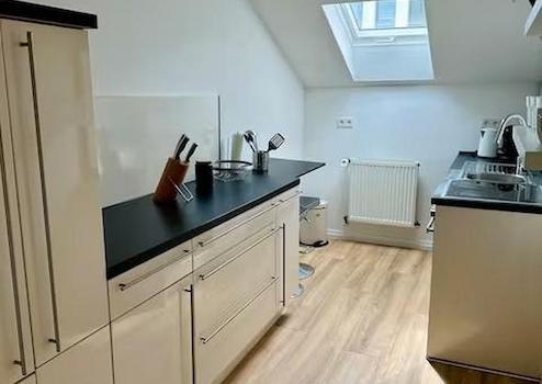 DG-Charme ohne Kompromisse: Die gemütlichen Schrägen verleihen der Wohnung Charakter, ohne die Stellfläche für Ihre Möbel nennenswert einzuschränken.
