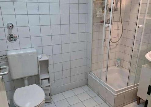 Badezimmer mit Dusche, WC und Waschmaschinenanschluss