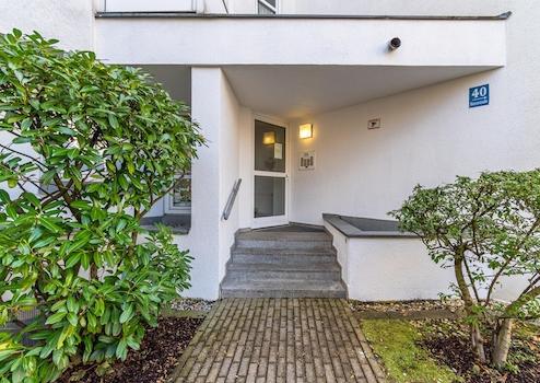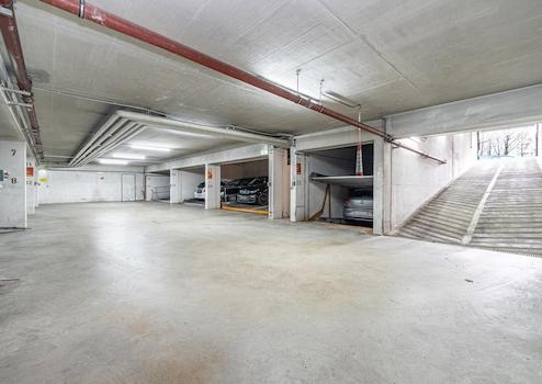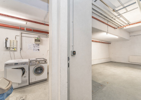 Im Haus stehen ein Waschraum mit Waschmaschine und Trockner sowie ein Fahrradabstellraum als Gemeinschaftsbereiche zur Verfügung. Das Treppenhaus ist mit einem Personenaufzug versehen. In der Tiefgarage gehört ein Duplex-Stellplatz zur Wohnung – in München ein wertvoller Pluspunkt. Zusätzlich ist ein Kellerraum vorhanden.