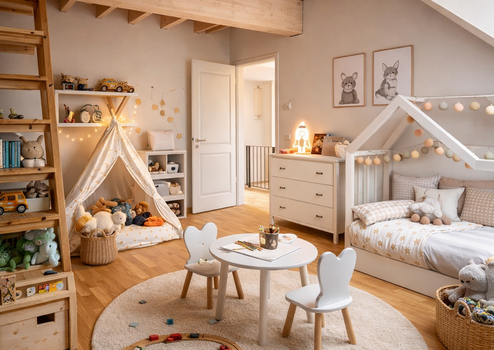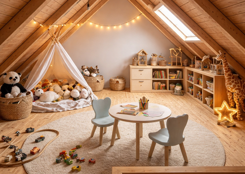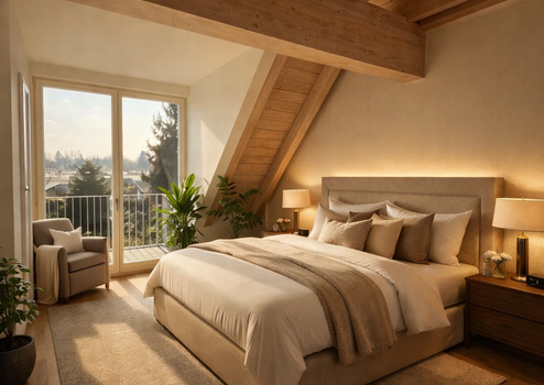 Besonders hervorzuheben ist die ausgeprägte Familienfreundlichkeit des Wohnkonzepts: Die ruhige, verkehrsarme Umgebung bietet Kindern viel Platz zum Spielen und Entdecken in unmittelbarer Naturnähe. Der großzügige Gemeinschaftsgarten sowie der liebevoll gestaltete Spielplatz schaffen ideale Bedingungen für gemeinschaftliches Miteinander und sichere Freizeitgestaltung. Gleichzeitig bieten die durchdachte Raumaufteilung und zusätzliche Nutzungsmöglichkeiten – etwa im Spitzboden – ausreichend Platz für individuelle Lebensmodelle, vom Familienalltag bis zum Homeoffice.