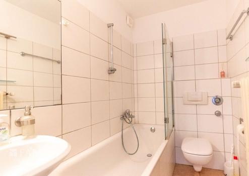 Das Badezimmer ist mit einer Badewanne ausgestattet, die aber auch als Dusche verwendet werden kann.