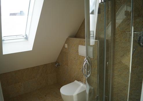 Über eine elegante Wendeltreppe gelangen Sie in das Dachgeschoss, das mit einem weiteren Schlafbereich zusätzlichen Raum für individuelle Nutzung bietet – ob als Rückzugsort, Homeoffice oder Gästebereich. Ein separates WC auf dieser Ebene sorgt für zusätzlichen Komfort.