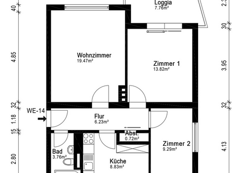 - 3 Zimmer, Küche, Bad, Abstellraum - 66 qm Wohnfläche