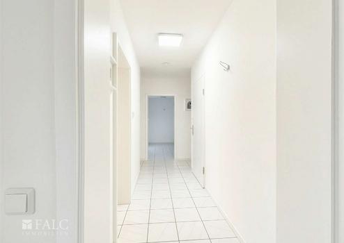 Bereits beim Betreten der Wohnung gelangen Sie in einen einladenden Flur, der als zentrale Verteilerachse dient. Von hier aus erschließen sich alle Räume der Wohnung optimal.
