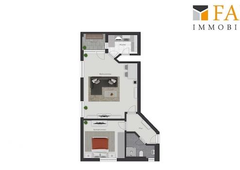 Zur Raumaufteilung gehören ein großzügiges Wohn- und Esszimmer, ein separates Schlafzimmer sowie ein Badezimmer mit Dusche und Waschmaschinenanschluss. Ergänzt wird das Raumangebot durch einen Balkon mit Südwest-Ausrichtung. Eine Einbauküche ist nicht Bestandteil des Angebots.