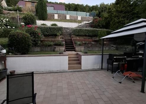 Das Gartengrundstück ist terrassenförmig angelegt und pflegeleicht gestaltet.