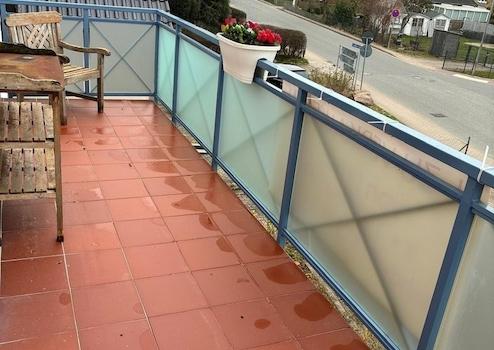 Die Wohnung liegt im 2. Stock und hat drei Zimmer mit ca 77 qm Wohnfläche. Von dem großzügigen Wohnzimmer führt eine Glasschiebetür auf den langen Balkon mit entferntem Ostseeblick. Richtung Süden sind zwei Veluxfenster. Am Schornstein ist eine Vorrichtung für einen Kaminofen vorhanden.