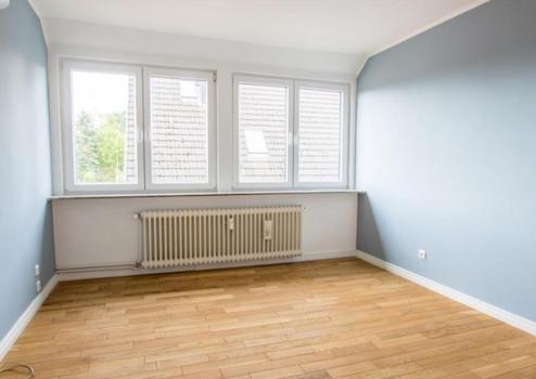 Zimmer 3 wurde von uns als Büro genutzt und hat zwei Fenster, die nach Süden gerichtet sind. Es verfügt über einen großen Einbauschrank. Alle drei Zimmer inklusive Flur sind mit hochwertigem Vollholz- Schiffsbodenparkett ausgestattet.