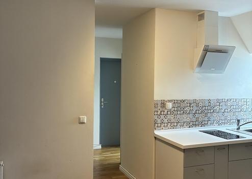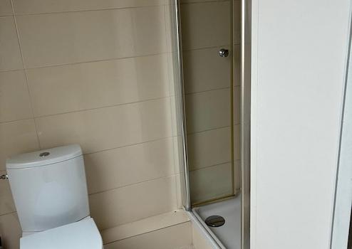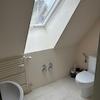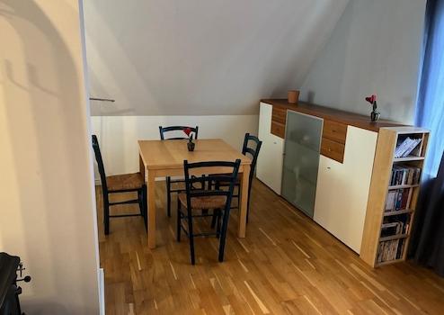 Neben dem Wohnungseingang befindet sich der Aufgang zum ausgebautem Dachstudio. Das Studio verfügt über ca. 27 qm, die sich in einen großen Wohn und- Essbereich mit Küchenzeile aufteilen. Es sind ein Kaminofen, sowie zwei neue Heizkörper installiert. Zu dem Studio gehört ein eigenes Duschbad, ebenfalls mit Fenster ausgestattet.