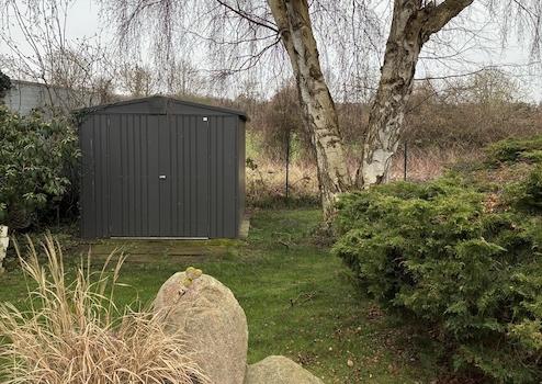 Zur Wohnung gehört ein Gartenanteil hinter dem Haus, sowie ein Gartenhaus von Biohort aus 2018. Die Gartenpflege wird von einem Gärtner übernommen, der vom Hausgeld bezahlt wird. Ebenso ist die Treppenhausreinigung im Hausgeld enthalten.
