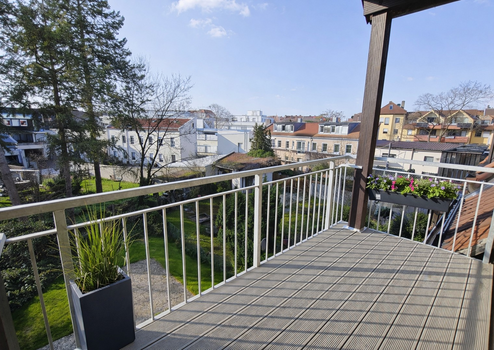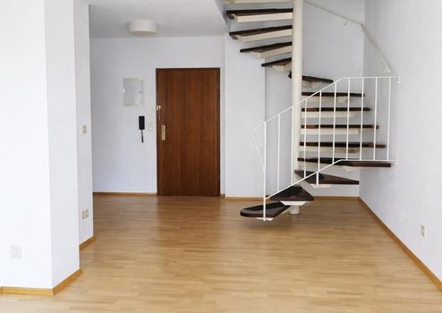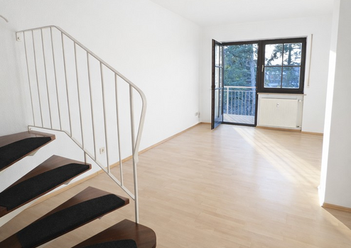 Beim Betreten dieser charmanten 2,5-Zimmer-Maisonette-Wohnung empfängt ein heller, einladender Wohnraum mit Echtholzparkett. Von hier aus gelangen sie auf den großzügigen Balkon, der dazu einlädt, bei Sonnenschein die herrliche Aussicht über die Dächer Erlangens zu genießen.