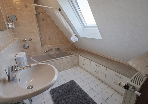 Das Badezimmer ist lichtdurchflutet und verfügt über eine Badewanne sowie großzügige Einbauschränke und Ablageflächen. Ein eigenes Kellerabteil und ein abschließbarer gemeinschaftlicher Fahrradkeller runden dieses attraktive Angebot ab.