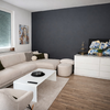 Großformatige, pflegeleichte Fliesen unterstreichen das moderne Wohnambiente und verleihen den Räumen eine zeitlose Optik.