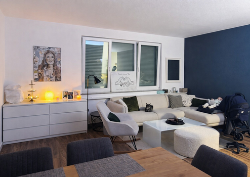 Eine umweltfreundliche Luft-Wasser-Wärmepumpe versorgt die gesamte Wohnung über eine angenehme Fußbodenheizung und sorgt in allen Räumen für gleichmäßige, behagliche Wärme. Die dreifachverglasten Fenster bieten hervorragende Wärmedämmung und Schallschutz und tragen maßgeblich zu niedrigen Energiekosten bei.