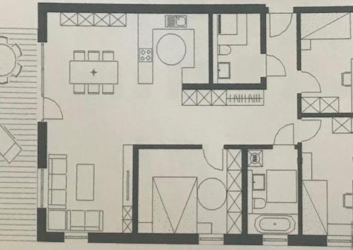 Diese 4 Zimmer Wohnung verfügt über 2 Badezimmer (ein Badezimmer mit Dusche und ein Badezimmer mit Badewanne), einer großzügigen Terrasse und einer Luxus Einbauküche mit allen Geräten.