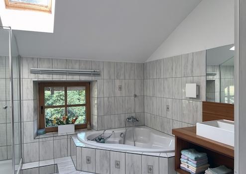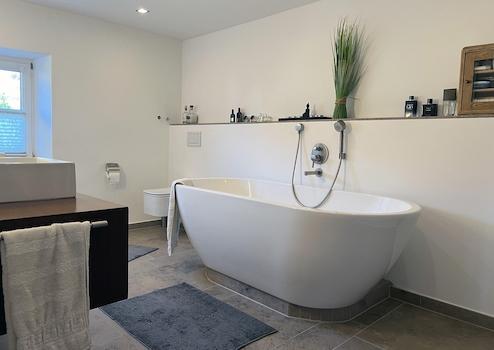 • Großzügiges Masterbad mit Wanne und bodengleicher Dusche