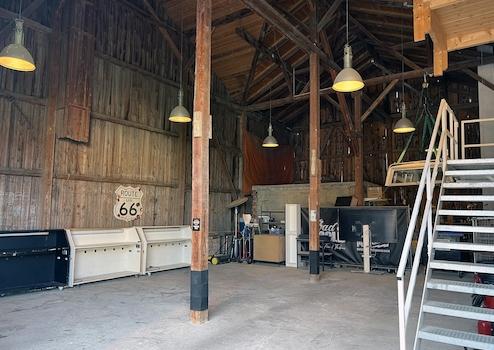 Die große Scheune bietet zusätzlichen Raum für Werkstatt, Atelier oder Lager.