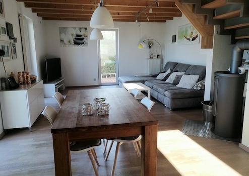 Im Wohn-/Essbereich befindet sich in zentraler Lage ein hübscher Schwedenofen (Holzofen) von CONTURA. Im Winter sorgt dieser ebenfalls für eine angenehme Wärmeverteilung im gesamten Haus.