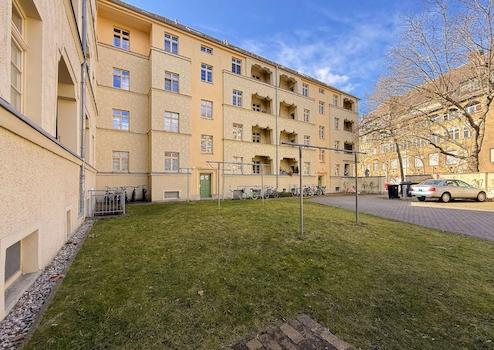 Zur Wohnung gehört außerdem ein geräumiges und trockenes Kellerabteil, das zusätzlichen Stauraum schafft. Ein Gemeinschaftshof mit Grünfläche steht den Bewohnern ebenfalls zur Verfügung.