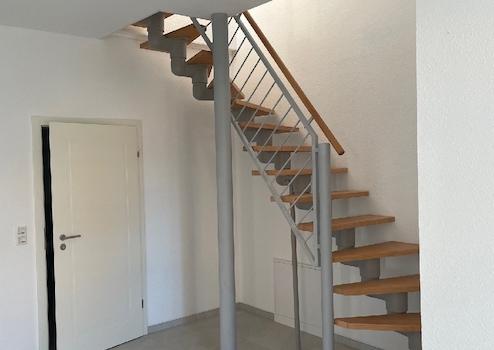 Über die neue Stahl / Holztreppe gelangen Sie in das Obergeschoss, hier befinden sich 2 weitere lichtdurchflutete Schlafzimmer.