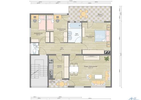 Balkon, Garten, Keller, Einbauküche, Laminat, Fliesen