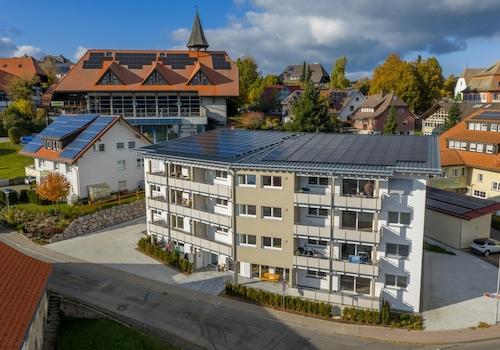 Die Wohnung befindet sich in einem neu errichtetem Mehrfamilienhaus nach KfW Standard 55 mit einer an das Nahwärmenetz von Grafenhausen angeschlossenen Zentralheizung. Auch die dezentrale Lüftungsanlage mit Wärmerückgewinnung und die PV-Anlage unterstreichen den nachhaltigen Wohnaspekt. Strom kann über die eigene PV-Anlage zu einem vergünstigten Preis bezogen werden und wird in einem separaten Belieferungsvertrag geregelt.