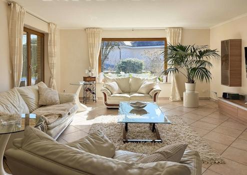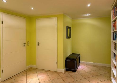 Im Souterrain stehen ein weiteres großes Schlafzimmer mit integrierter Ankleide, ein zusätzliches Schlafzimmer, ein großes Bad mit Wanne und Platz für Waschmaschine und Trockner, eine Abstellkammer, der Heizraum, ein derzeit als Wein-Zimmer bzw. Partyraum genutzter Bereich sowie ein weiteres Zimmer, das sich ideal als Homegym, Hobbyraum oder Büro anbietet, zur Verfügung.
