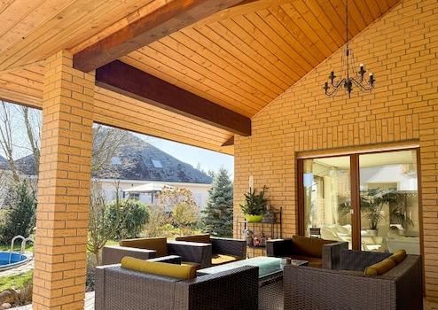 Abgerundet wird dieses attraktive Angebot durch eine große Doppelgarage mit Zugang zum Dachboden, eine liebevoll angelegte Terrasse mit gemauertem Gartenkamin, einen Pool, eine 6.000-Liter-Zisterne zur Gartenbewässerung sowie ein schön bepflanztes Grundstück.