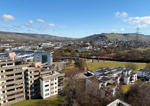 - überdachte und nicht einsehbare Dachterrasse mit Blick zur Schwäbischen Alb - Von Bad Küche und Schalfzimmer Blick zum Fernsehturm - sehr helle Räume, dank großzügiger Verglasung - Hausmeistervollservice - Aufzug von ...