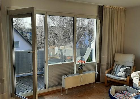 Das Haus liegt in einer ruhigen Nebenstraße ohne Durchgangsverkehr, es schließen sich Einfamilienhäuser an, über die man einen schönen Blick hat. Daher vermittelt die Wohnung einen luftigen und sonnigen Eindruck.