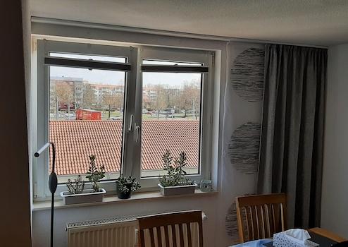 Im oberen Bereich sind alle Fenster im Jahre 2021 und 2022 gegen Kunststofffenster ausgewechselt worden, die beiden großen Fenster mit automatischen Jalousien mit Fernbedienung und Solarbetrieb. Drei Fenster haben Dreifach- Verglasung, was sich im Sommer gegen zu viel Erwärmung bewährt hat.