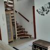 Die Treppe nach oben beginnt im Flur. Die Stufen sind mit Massivholz belegt. Oben angekommen, steht man in einem kleinen Flur, der als kleines Arbeitszimmer nutzbar wäre, da er ein Dachfenster hat.