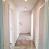 In den Wohnräumen wurde hochwertiges HARO-Laminat verlegt, während der Flur, das Badezimmer und die Küche mit stilvollen Fliesen im Naturstil versehen sind.