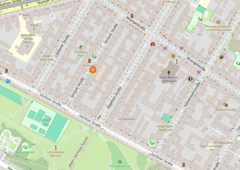 Die Sorauer Straße 23 befindet sich im lebendigen Berliner Stadtteil Kreuzberg, einem der gefragtesten innerstädtischen Quartiere der Hauptstadt. Die Umgebung ist geprägt von urbanem Flair, kultureller Vielfalt und einer hervorragend ausgebauten Infrastruktur. In unmittelbarer Nähe liegen zahlreiche Cafés, Restaurants, Bars und individuelle Geschäfte, die das Viertel besonders attraktiv machen. Der Görlitzer Park sowie der Landwehrkanal bieten fußläufig erreichbare Grün- und Erholungsflächen und laden zu Freizeitaktivitäten im Freien ein. Die Anbindung an den öffentlichen Nahverkehr ist ausgezeichnet: Mehrere Buslinien sowie die nahegelegenen U-Bahnhöfe Görlitzer Bahnhof und Schlesisches Tor (U1 und U3) ermöglichen eine schnelle Verbindung in die Berliner Innenstadt und andere Stadtteile. Einkaufsmöglichkeiten für den täglichen Bedarf, Schulen, Kitas und medizinische Versorgung befinden sich ebenfalls in der direkten Umgebung. Die Lage vereint urbanes Leben, kulturelle Dynamik und hohe Lebensqualität – ideal für alle, die das authentische Berlin schätzen.