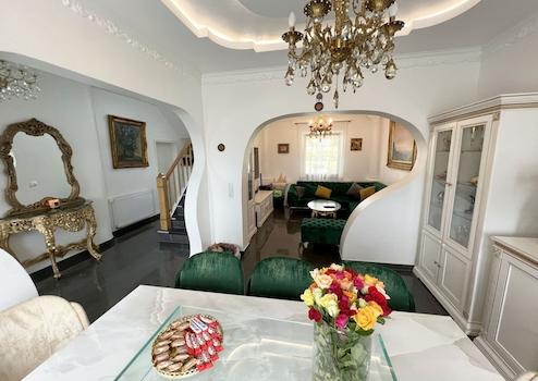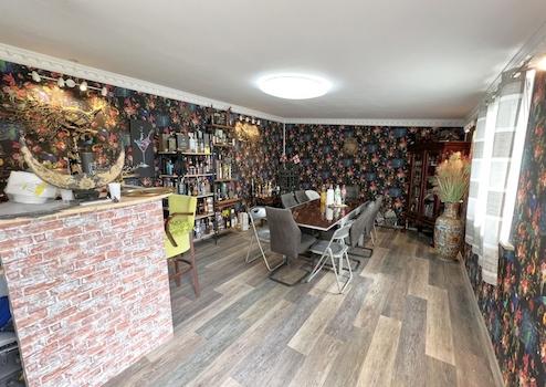 Das Haus ist vollständig unterkellert und bietet zusätzliche Räume, darunter einen großzügigen Partyraum.