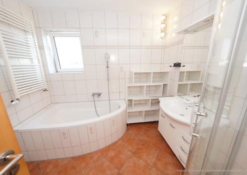 Im Erdgeschoß befindet sich neben dem Eingangsbereich eine voll möbelierte Küche mit separater Speiss, 1 Gäste WC , das Wohnzimmer mit Ausgang zur Sonnenterrasse und in den Garten. Im 1. Obergeschoß befinden sich neben 2 Schlafräumen und Flur ein großzügiges Badezimmer mit Wellness Ambiente .