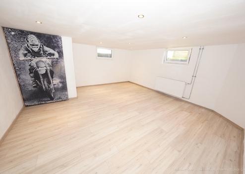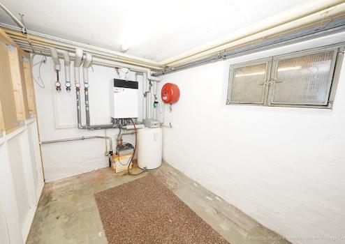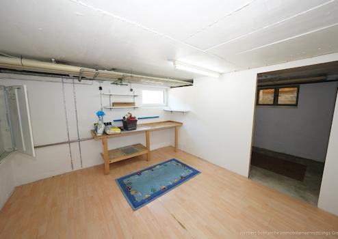 Im Untergeschoss wurde der Hobbyraum von der Jugend der Vorbesitzer zu Wohnzwecken umgestaltet. Die davor gelagerte größere Doppelhaushälfte hat eine Doppelgarage, in der 1 PKW Stellplatz für die kleinere Doppelhaushälfte vorgesehen ist.