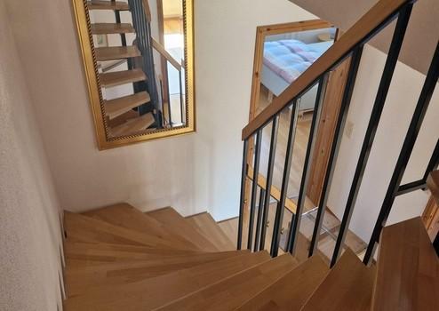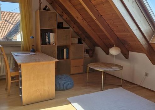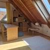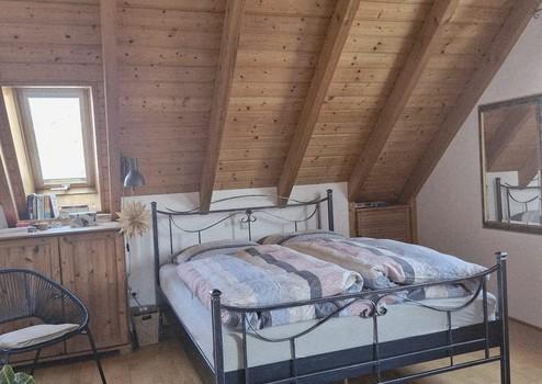 Im Dachgeschoss sorgt ein stilvoller Sichtbalkenstuhl für eine besondere Wohnatmosphäre.