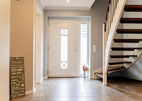 Dieses durchdachte und sehr gepflegte Einfamilienhaus wurde 2011 in konventioneller Bauweise mit ortsansässigen Firmen errichtet. Die hochwertigen Materialien verleihen dem Haus Ruhe und Struktur. Die Immobilie ist gut gedämmt (11,5 cm Verblendstein, 1cm Schalenfuge, 12 cm Dämmung, 17,5 cm Ytong). Das Dach ist ebenfalls komplett gedämmt. Der Walmdachbungalow verfügt über eine tolle Raumaufteilung. Der einladende und großzügige Haupteingangsbereich lässt keine Wünsche offen.