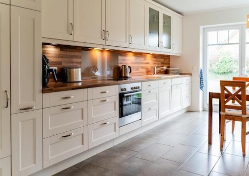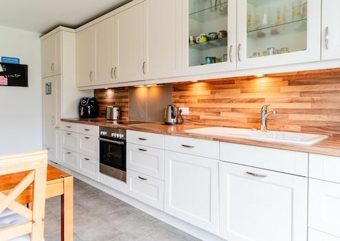 Die Einbauküche bindet sich ideal in die Küche ein.